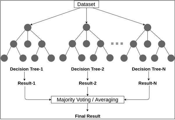 The random forest model operates by assembling many decision trees and taking the mode for classification problem or the average for regression problem. Details of the RF method is given in Nwosu et al. (2021) and Obite et al. (2021). The best feature within a random subset of features is searched for and is used for splitting a node in random forest. This helps to fit a better model.