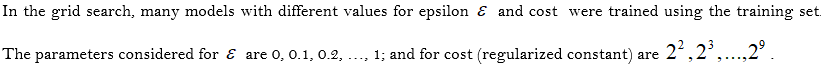 This gave us 88 different models. A 10-fold cross validation was used during the grid search to obtain the optimal parameters and the radial basis function was used as the kernel function. The result of the grid search is given in Figure 3.