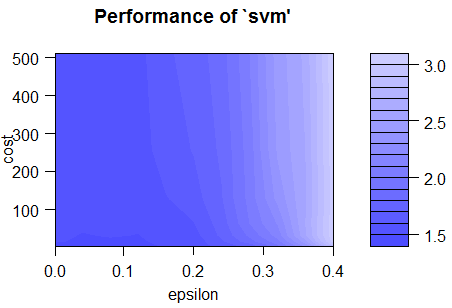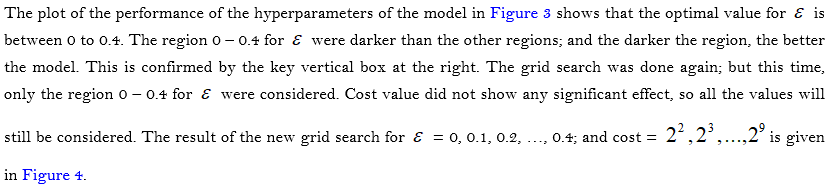 Carefully looking at Figure 4, we discovered several darker patches for between 0 to 0.12; and for cost, between 0 to 10. With the aid of the R software,