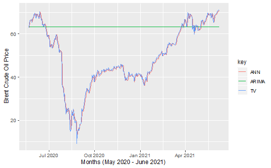 The important role Brent crude oil plays in the oil market and global economy has made researchers to try different methods to model the Brent crude oil price. Mensah (2015) examined the Brent crude oil price using the ARIMA method. They used the first seventeen years to train the model and the last three years to confirm the accuracy of the forecasts. The ARIMA (1, 1, 1) model is the best when compared to other orders of the ARIMA model. Abdollahi and Ebrahimi (2020) used the autoregressive fractionally integrated moving average, adaptive neuro fuzzy inference system and the markov-switching models to model the Brent crude oil price. They were motivated due to the prodigious impact the crude oil price has on various economic sectors. They compared the models using the RMSE, MAPE and Diebold-Mariano test; and discovered from the numerical results that a hybrid model of the selected methods weighted by genetic algorithm performs better than the other models.