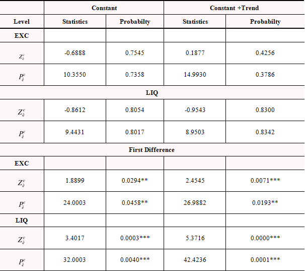 Appropriate lag length has to be determined in panel data analysis. Lag length selection criteria are used for this purpose. The results are given in Table 4. Accordingly, 2 lengths are suggested by all (AIC, SC, HQ, LR and FPE) criteria.