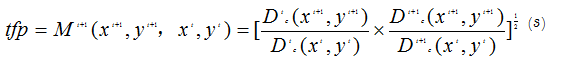 We calculate the geometric mean of the two Malmquist indices in Equation 1 and Equation 2 to obtain Equation 3:
