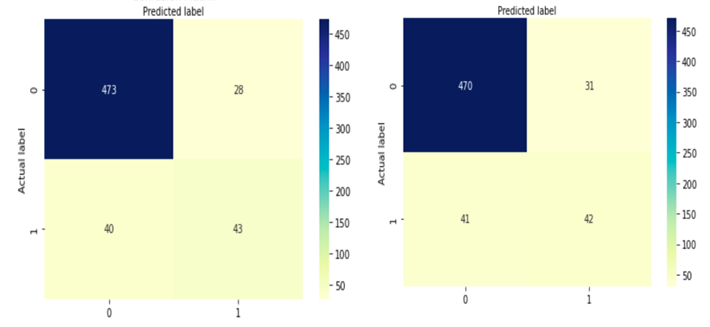 In some cases, the Type II Error was more dangerous. We can relate that statement to the example of the credit default prediction above. If the customer does not default but was predicted to default (FP), then in the following prediction, ESCO can find out the actual situation that the customer did not default. However, if customers default but are predicted not to default (FN), the company will find the actual situation very late, and ESCO will suffer financial losses. So, it can be said that Type II Error was dangerous. The confusion matrix will tell how well the model we make. In particular, the confusion matrix also provides information about TP, FP, TN, and FN. It was beneficial because the classification results generally cannot be adequately expressed in one number only. The confusion matrix allows us to see from whom to predict the credit default quickly, how much to default and not. The confusion matrix in the image below shows that companies were said to not default in the ANN – 473 companies, but 470 companies were declared not to default when using the LR model (TP). According to the LR (TN) model, the ANN model predicts 43 companies default correctly and 42 companies according to the LR (TN) model. The correct prediction (TP) was in the diagonal table in the upper left corner, so visually, it was straightforward to see the prediction error because it was in the table outside the left corner diagonal; the confusion matrix is depicted in Figure 2.