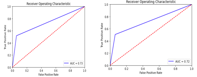 Simultaneously, the ANN algorithm-based model showed the best result under the ROC Curve metric in the other area. The ideal ROC curve is parallel to the Y-axis, which is impossible to accomplish in practice. The model that comes closest to it will be the best. Under the ROC Curve Value (AUROC), a number between 0 and 1 was traditionally used to summarize the ROC curve. The better the model, the greater the AUROC. AUC was a composite measure of success that considers all possible classification thresholds. The model's likelihood rates a random positive example higher than a random negative example was one way to view AUC. A receiver operating characteristic curve (ROC curve) was a graph that shows how well a classification model performs overall classification thresholds. Two parameters were plotted on this curve. TPR vs. FPR was plotted on a ROC curve at various classification thresholds. Lowering the classification threshold causes more things to be classified as positive, resulting in more False Positives and True Positives. A typical ROC curve for ANN was 0.73, and LR was at 0.72, shown in Figure 3.