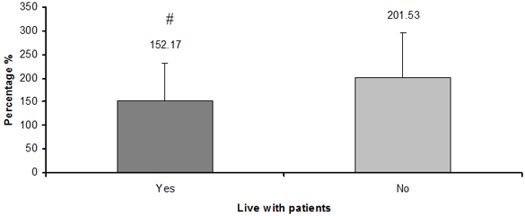 # indicated difference between those living with patients and those who do not (p=0.05)
