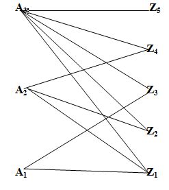 The values of z1, z2 and z4 are determined by the combined effect of the factors A2 and A3 and the indexes z3 and z5 - the combined effect of A1 and A3. The graph of the optimization based on the weights of the vertex allows us to determine that the graph contains an Eulerian circuit: A3 - z1 - A2 - z2 - A3 - z5 - A1 - z3 - A3 - z4 - A2. (Fig 3.2)