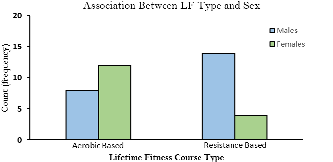 Overall, when examining the role of motivation towards LF classes, it is important to account that students’ perceptions of LF classes may not be reflective of their exercise motivation. In other words, students may be motivated to exercise and still not do it, or they do not value the importance of taking an LF class and still exercise outside of it. This assumption ties back to the discrepancy between motivation and exercise participation and how the implications of personal wellbeing motivation differed between sexes. Furthermore, there was also an association between sex and LF type, aerobic- or resistance-based class, where males preferred resistance-based and females preferred aerobic-based LF classes. The difference in preference of an LF class type could warrant sex-specific programs to meet the needs of both males and females (Lackman et al., 2015) , or instructors could design curriculums suited to both sexes to ensure that, despite the LF class type that students enroll into, they all will still attain a similar benefit by the end of the semester. Despite such difference, both males and females had a high frequency of responses that fell within the personal wellbeing motivation, but that did not relate with their LF class type, which suggests that there was a mismatch between the motivation of students and their chosen class.