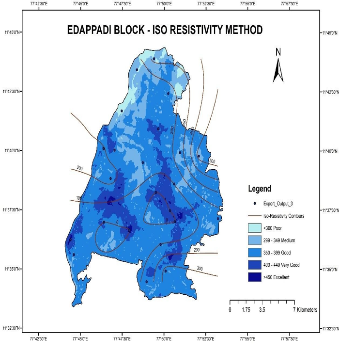 The delineated groundwater potential zone map is validated with the Isoresistivity map. The resistivity valley can be taken as high-water potential zones and similarly, the resistivity hills may be corresponding to low water potential zones.