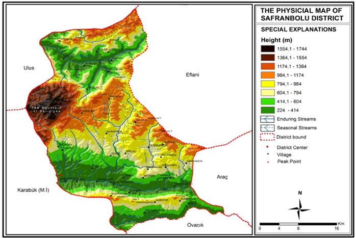 When the climatic data between 1960 and 2005 for Safranbolu, which is located in the Western Black Sea Part of the Black Sea Region, are evaluated, it is observed that the average annual temperature value is 12,3 C°. The average temperature in January is measured as 2,6 C°, and the average temperature in July is 22 C°. The annual average maximum temperature in the fields is 18,7C°. When the average of the highest temperatures during winter months is examined it is observed that these values vary between 6-8 C°. When summer months are considered, the maximum temperatures in Safranbolu are over 25C°. The average precipitation between the years 1960 and 2005 has been calculated as 440,3 mm (Map 3). According to these values, it must be cared that the temperatures in Saffron cultivation areas must not drop below 0 C°, and must not be excessive. These values are recommended for the ecological conditions for production yield and quality. Saffron has tolerance against much lower temperatures and precipitation values.