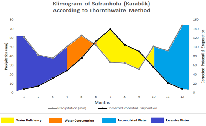 After the literature review, the climatic characteristics of Safranbolu have been determined in the study in the light of the data received form the General Management of Meteorology. The study was supported by using the Thornthwaite Climate Classification Method. In preparing the cartographic materials of the study, the ArcGIS 10.3 GIS (Geography Information System) Package Program was used.
