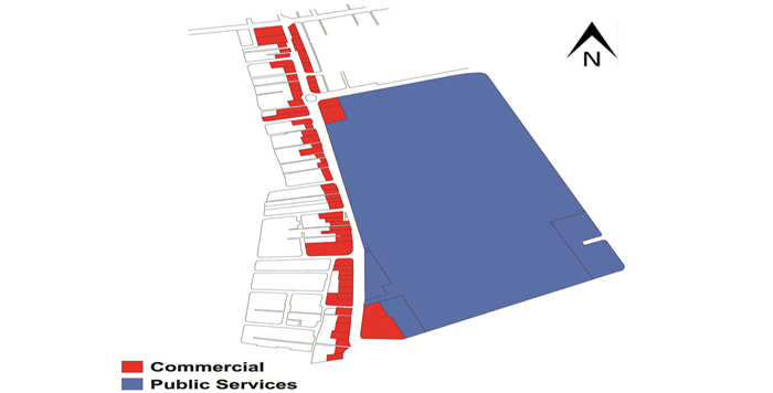 According to the municipal land use map the commercial properties organized a long the university street making a continuous strip; also the building regulations for land plots are assigned the building regulations for land plots.