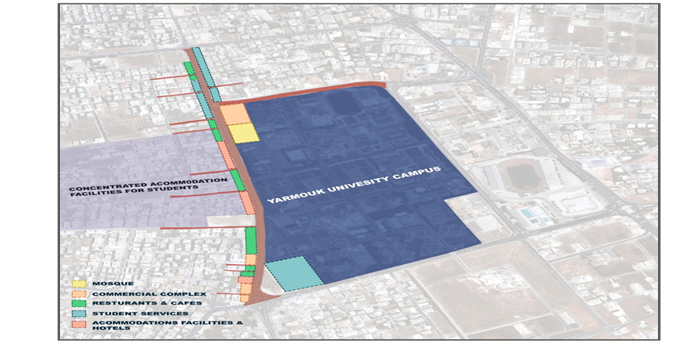 The built environment of university district has shown a big development after the establishment of Yarmouk University, especially at the beginning of 80’s and 90’s of the previous century, and this was as a response to the new urban needs, because of the new changes in social, economic, cultural, and demographic aspects of users life (Dararkah, 2004).