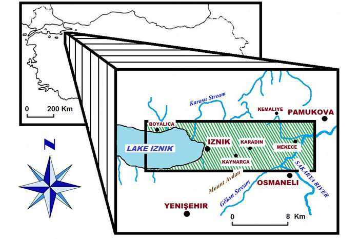 Iznik is the largest settlement place in the study area. The district, which is bound to the province of Bursa, carries traces of various old civilizations established on it. Other places are rural settlements. Some of them are Mekece, Boyalıca, Elbeyli, Dereköy, Karadin, and Ciciler.