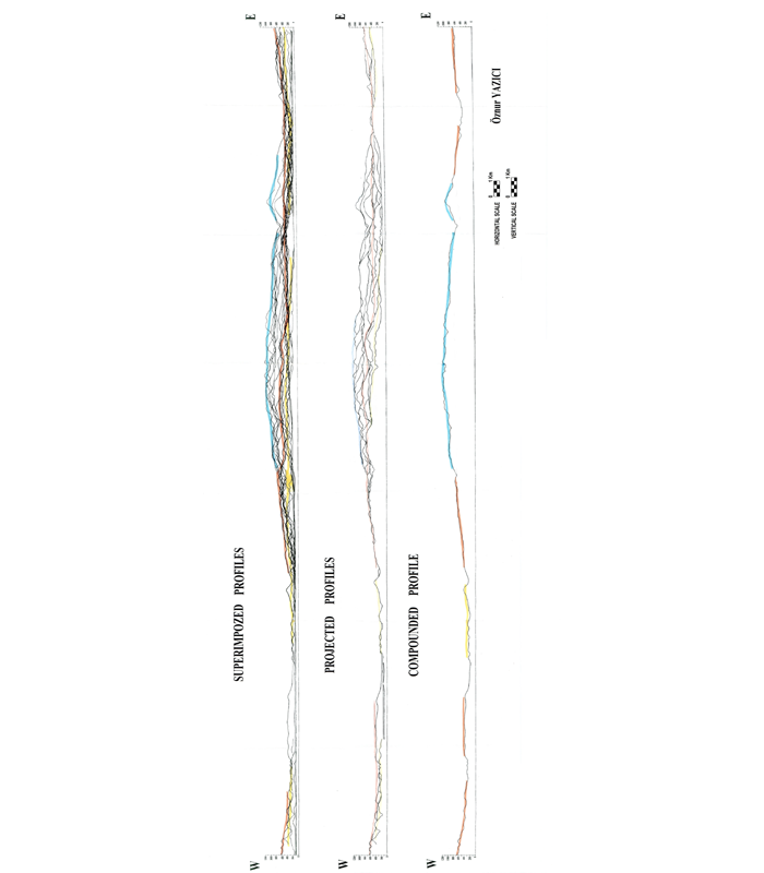 Figure-4. Superimposed, projected, and compounded topographic profiles in the West-East direction between Iznik and Mekece