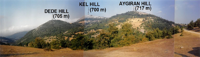 Figure-6. Location of Aygıran Hill (717 m), Dede Hill (705 m), and Kel Hill (700 m).