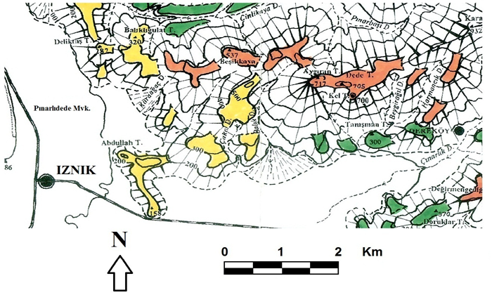 Figure-5. Map of erosion surfaces between Iznik-Mekece