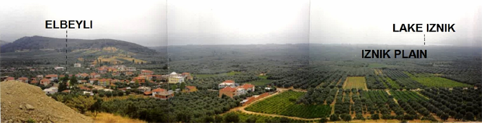 Photograph-3. Southwest view of the Iznik Plain from the northeast of Elbeyli. Behind the village, there is a low plateau field where the Pliocene erosion surfaces are found.