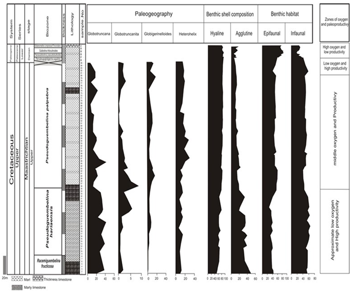 This study contributes a new methods to understand the biostratigraphy and ageing the rock samples in late Cretaceous of eastern Tethys. Also, This study is one of very few studies which have investigated the pal ecology and oxygen changes in Campanian-Maastrichtian sediments by using the plank tic and benthic foraminfera that are small microorganism.