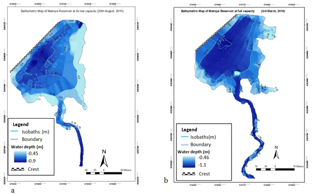Worth mentioning is the thought that, seasonal changes in bathymetric and hydrological regimes as noted from the Makoye reservoir implicitly entail that different proactive management and planning strategies for reservoir water should be applied especially during water stressful periods. It may not be appropriate to use monotonous strategies for different seasons because of variations in levels of water stresses, availability and accessibility.
