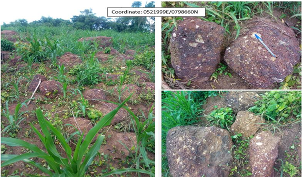 The validation process generally confirmed the existence of the various regolith landform units captured on the RLU map except for some few areas which were fraught with misrepresentations. During the mapping exercise, class supported lateritic duricrusts, sediments from depositional environments, exposures, truncated outcrops, lateritic pans and quartz veins were confirmed to be prevalent on the area Figure 7 and Figure 8.