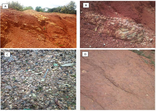 Figure-8. (A) and (B) represents some Erosional areas identified on the field; (C) represent sediments of the depositional regime; (D) Lateritic pans encounted on the field.