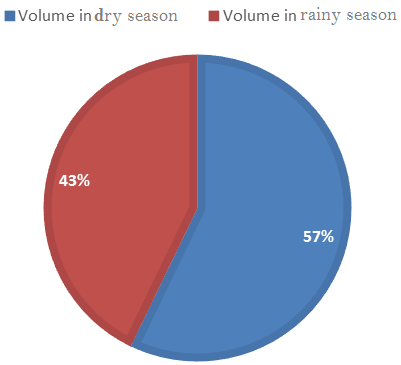 Block industries on monthly average uses about 303025m3 with annual abstraction volume of 1818150m3. Dry season has the largest volume of abstraction from this source than in rainy season because rain helps in watering the bricks after production even though production is less during the rainy season and highest in dry season as shown in Figure 9.