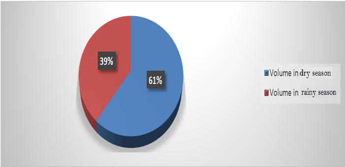 Figure-10. Mean volume of water abstraction in the study area between seasons for dry and rainy season by water vendors.