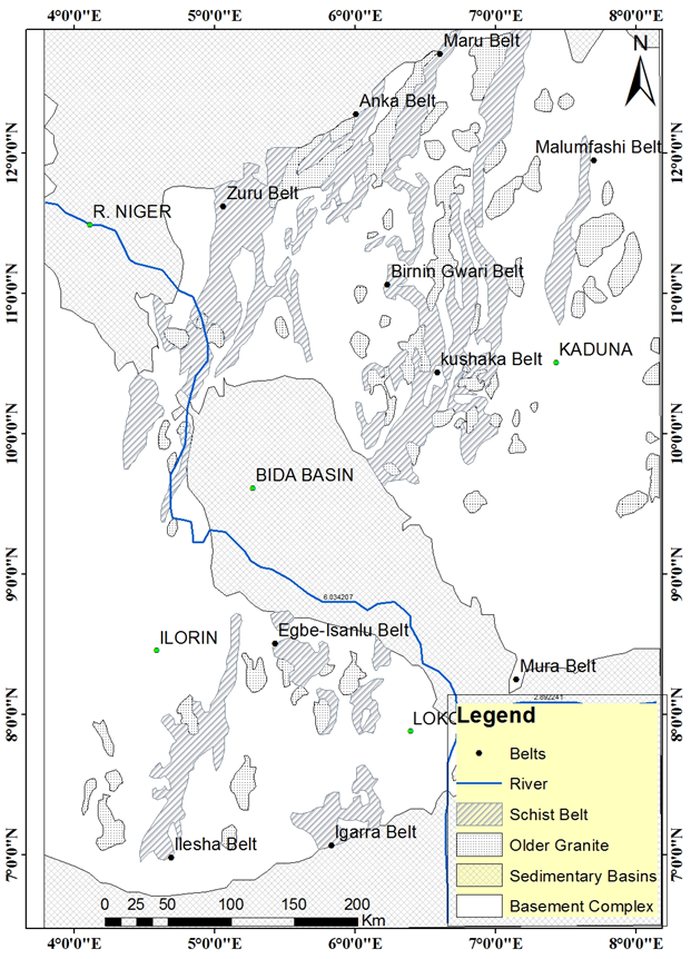 Nigeria lies approximately between latitudes 4oN and 15oN and Longitudes 3oE and 14oE, within the Pan African mobile belt in between the West African and Congo Cratons. The Nigeria basement complex, forms a part of this Pan-African mobile belt, and lies to the east of the West African Craton and between the Dahomeyan of the Benin Republic at the west and Cameroun at the east (Figure 1). It consists of predominantly Archaean polycyclic grey gneisses of granodioritic to tonalitic composition, remnants of unconformable Proterozoic cover now represented by variably migmatised metasediments which are preserved in syn-collisional schist belts, and many syn-tectonic to late tectonic intrusions (Ajibade, Woakes, & Rahaman, 1987; McCurry, 1973).