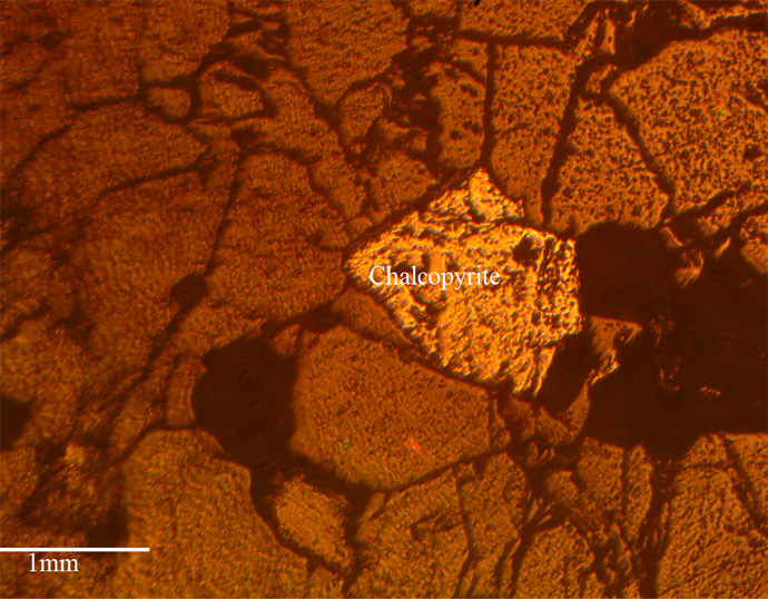 Figure 9. Photomicrograph of Chalcopyrite in a polished section of Quartz schist at Ikeji-Ile.