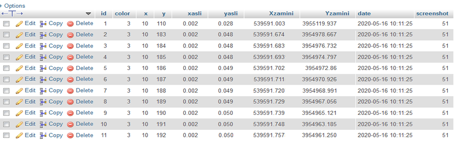 Figure 2. An example of a table containing the storage of traffic information and their coordinates.