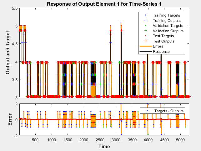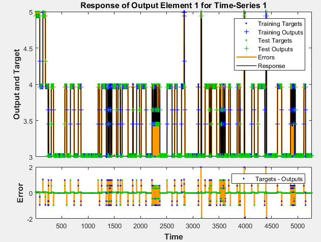 Bayesian neural network is a neural network-based method, which is used to model nonlinear and complex problems through statistical methods (Behzadi & Jalilzadeh, 2020; Zhang & Mahadevan, 2020). In this step, the Nonlinear Input-Output method is used, which is a problem-solving method for predicting time series. In this method, the values of 9-day traffic data are introduced as input data, and the actual values of 10th day data are introduced as output data to the network. In this step, as in the previous algorithms, the training, validation, and test data values are 70%, 15%, and 15%, respectively. Then the network is trained, and the error values of MSE and regression are calculated separately. The time series diagram for 3 o'clock in the morning is shown in Figure 6.