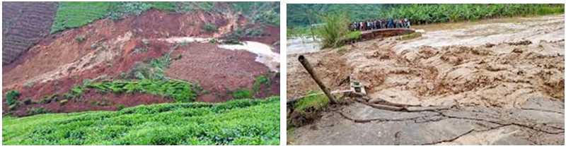 Due to the high amount of rainfall and the topographical structure, which is characterized by a steep slope, the district is often affected by landslides (Figure 8) and floods almost every year during periods of heavy rainfall. In the past, some victims drowned in water, others died after houses collapsed under heavy rains or landslides.