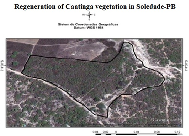 The Caatinga biome is inserted in the semiarid domain, and occupies an area of approximately 1,128,697 km² [1]. The area is located under the subequatorial latitudes, has a predominantly Tropical Hot Dry climate and corresponds to 11% of the Brazilian territory, occupying 86.44% of the State of Paraíba, with coverage corresponding to 194 municipalities [2, 3]. The native flora of the Caatinga biome is composed of small woody and herbaceous species, usually with thorns and succulents, with a predominance of families: Euphorbiaceae, Anacardiaceae, Fabaceae, Cactaceae and Bromeliaceae [4-6]. This vegetation presents degradation processes, such as deforestation, which alter floristics and natural regeneration. However, the elimination of vegetation cover causes serious environmental problems in the Northeastern Semi-arid, among which the reduction of biodiversity and soil degradation, mainly by mining, stand out [7-9].