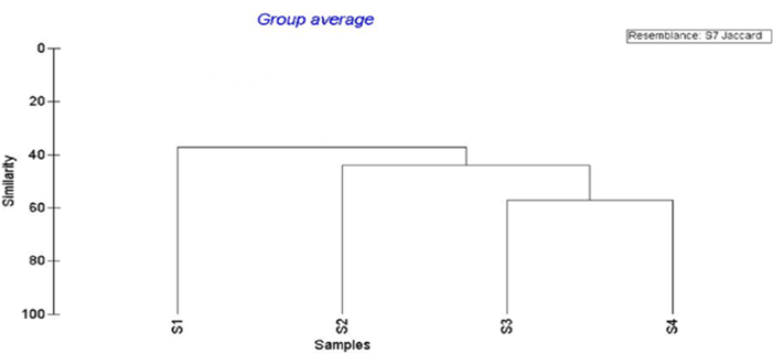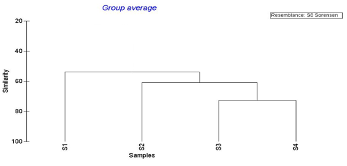 | Figure-7. Dendogram of similarity/floristic Sorensen recorded in the four areas based on the Sorensen index. |
