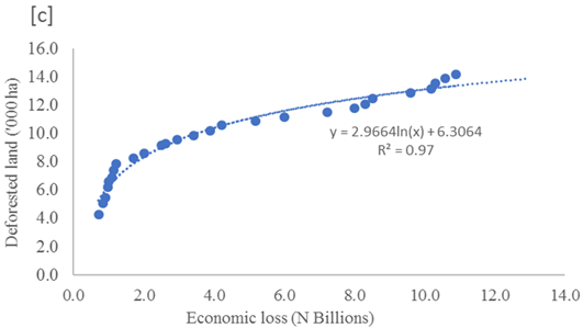 Figure-3c. Impact of Deforestation on Economic Loss in Edo State between 1990 to 2016