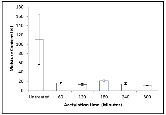 Figure-2. Moisture content of acetylated and unmodified Triplochiton scleroxylon