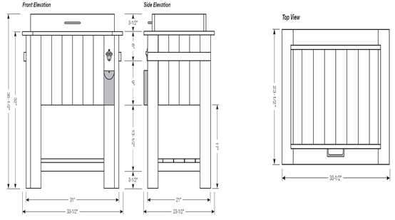 Figure-1. Front, side and top view elevation of the ice chest box [12].