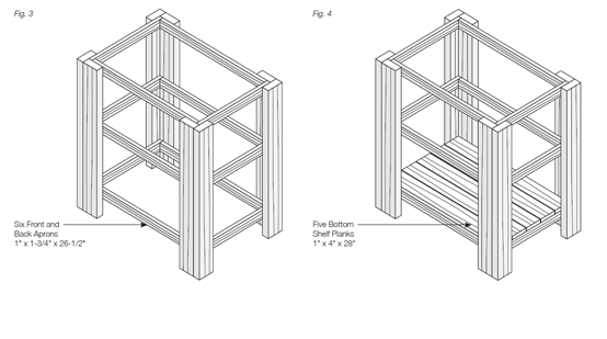 Figure-3. Installing front and back apron and bottom shelf planks [12].