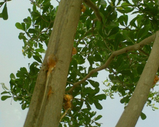 Figure-3. Gum (response parameter of attack) and tunnels on branches.
