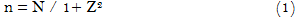 Z2 = Z- score / error margin (confidence level @ 95%); confidence level @ 95% = 2.58