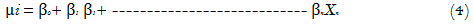 β = A set of unknown coefficients in a vector. xi = ith individual's attributes vector, and includes independent variables, which are defined as follows;