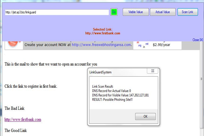 This Link Guard work is to examine the differences between the actual link and visual link (Figure 9).