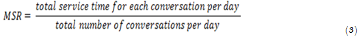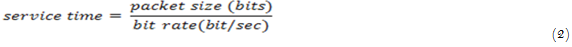 where bit rate is the number of bits that is transmitted in bits per second for each conversation, and packet size represents the bytes of the packet. The bit rate and packet size (bytes) was obtained in the ‘conversation window’ of Wireshark. After the service time for each is obtained, the Mean Service Rate (MSR) per day is computed using Equation 3.
