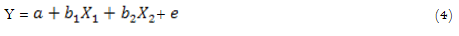 The value of Y could be obtained by substituting for the value of X1 and X2 in equation 11. The t-values and significant values test whether X1 and X2 are statistical determinants of Y. The result showed that at critical value 0.05, both X1 and X2 are statistical determinants of Y. Table 9 shows the model summary.