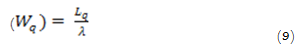 Average number of packet in the queue (Lq) that is, the average number of packets waiting in the queue before it is served is described in Equation 7.