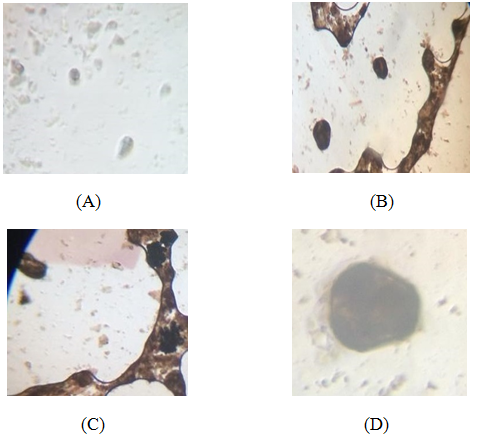 2 ml of the DPJ broth was added to 1 ml of AgNO3 solution and kept at 26°C till the reaction is completed. After 3-5 minutes, the solution developed the yellowish brown colour. The nanoparticles were observed under the light microscope by taking a drop of DPJ by the added silver nitrate solution on the slide.