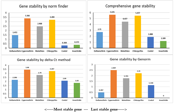 Keywords: Ace1, Acetylcholinesterase, CT values, Gene expression, Pectinophora gossypiella, Real time PCR, Validation of reference genes, ΔΔCT methods.