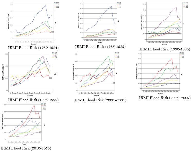 Figure 4a-g. Sokoto IRMI flood risk level 1980- 2015.