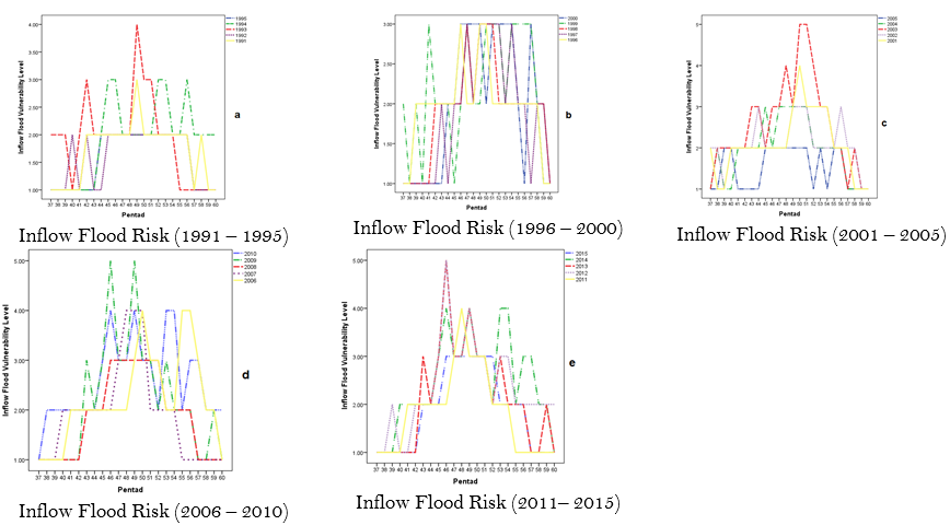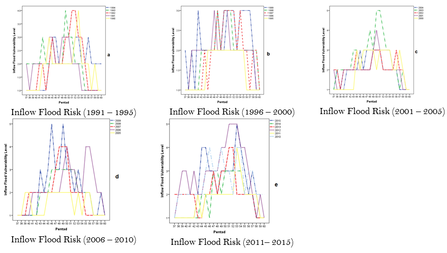Figure 6a-e. Shiroro flood inflow risk level (1990-2015).