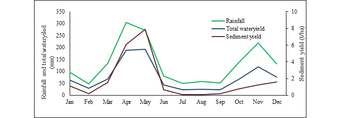 Upon identifying the uncertainty of parameters and successfully calibrating and validating the model, a base scenario (Figure. 7) is thus created for any further modelling of streamflow, climate change, impacts of land use change or assessment of soil and water conservation methods prior to their implementation in the catchment. The base scenario provides a platform for policy makers and water managers to monitor and evaluate trends in the catchment management. Impacts of project activities could also be assessed using these results as the reference point.